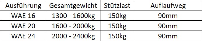 Auflaufeinrichtung mit Federspeicher hintenliegend für WAE 2000.
